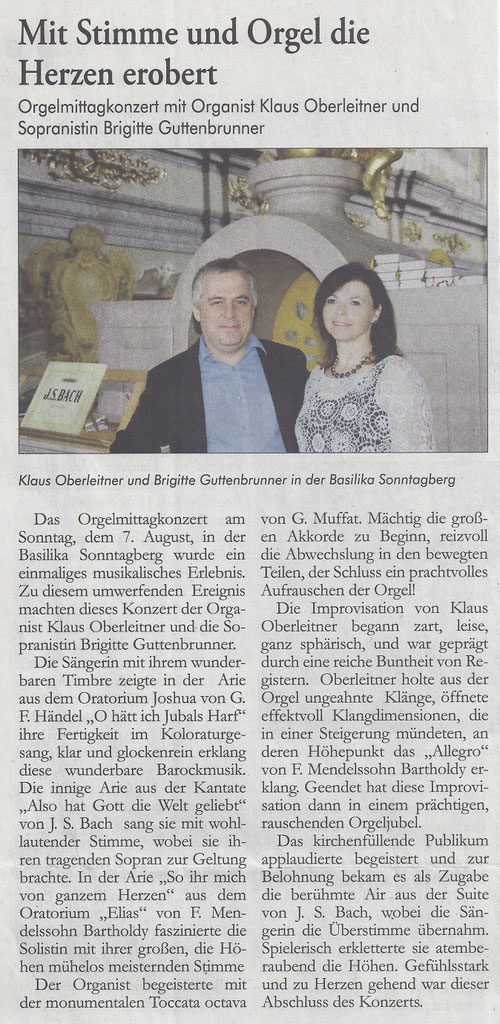 Nachlese zum Konzert am Sonntagberg (Orgelmittag);